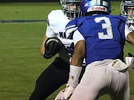 Wiley Conner looks for a running lane. Photo by Brent Woronoff