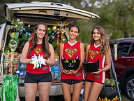 Ashley Shriver, Shora Peterson, and Aiyana Russel hand out candy for trunk-or-treaters. Photo by Sydney Tevin