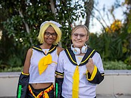Yenaya Gavillan and Izzy Hans cosplay Kagamine Rin and Len from "Vocaloid." Photo by Sydney Tevin