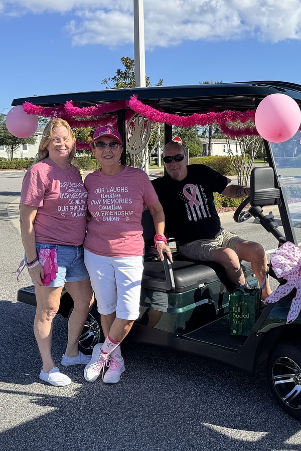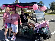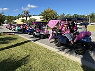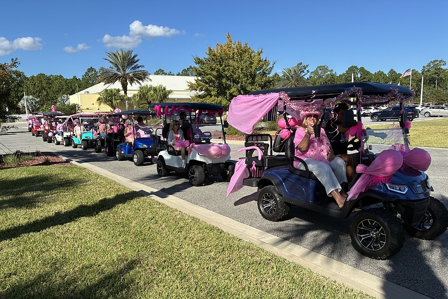 Plantation Oaks residents decked out their golf carts in pink for breast cancer awareness. Courtesy photo