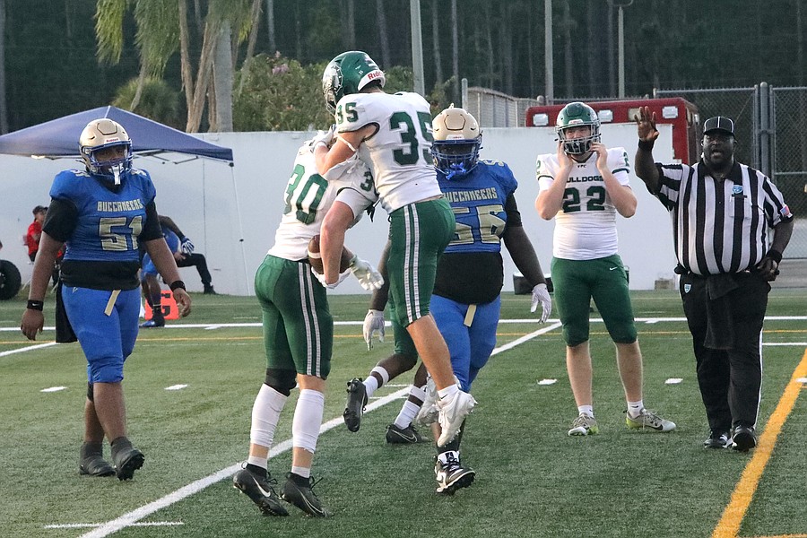 But on FPC’s ensuing drive, Mainland’s Amarion Long forced a fumble by running back Ehimen Ajede and the Bucs’ Kiarin Sullivan recovered at the Bulldogs’ 33-yard line. Mainland capitalized on the turnover with Dudley scoring from the 1, and the Bucs never looked back.