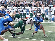 The Bulldogs rushed for 164 yards with Ajede running for 76 yards. Burchfield ran for 62 yards and passed for 60 yards. Jason Ebding completed one pass for 25 yards. Simmons ran four times for 2 yards.