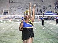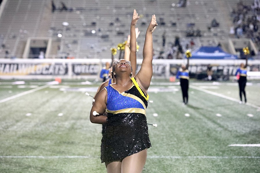 An'jeli Seppala perfroms with the FPC band at halftime. Photo by Brent Woronoff
