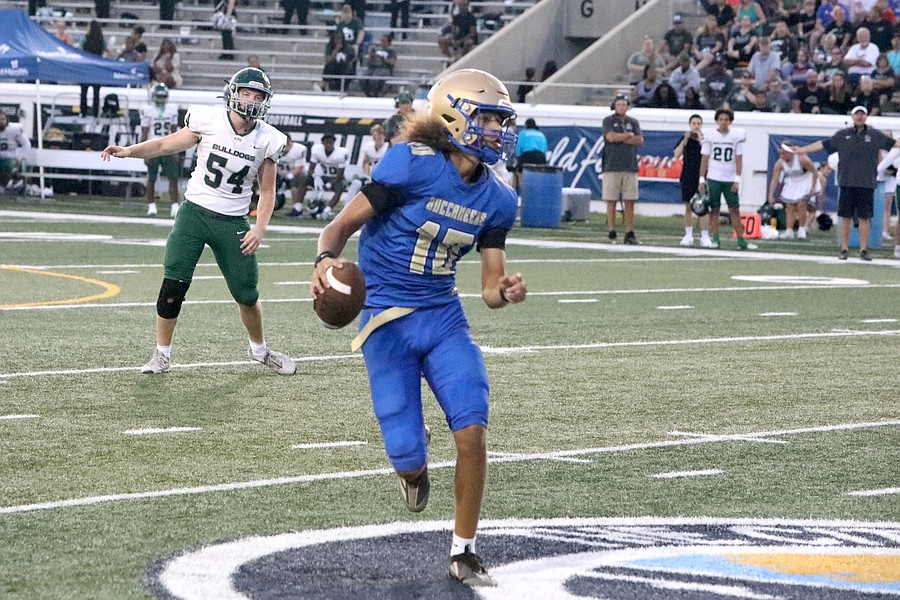 FPC quarterback La'Darius Simmons scrambles. Photo by Brent Woronoff