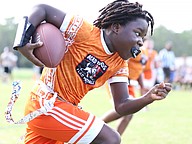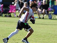 Ohio State’s 10U player, Jace Perry, gains yardage against the Gators in Saturday’s flag football matchup. Photo by Christine Rodenbaugh
