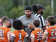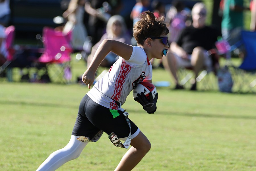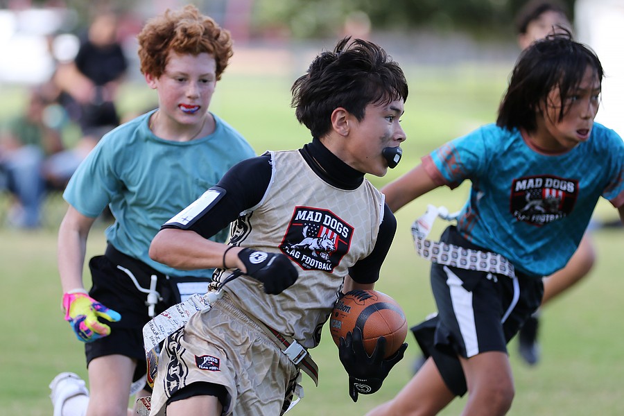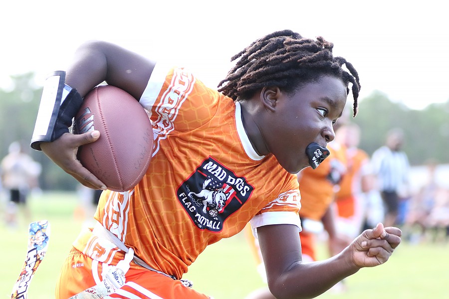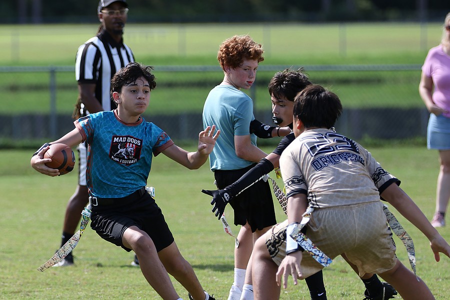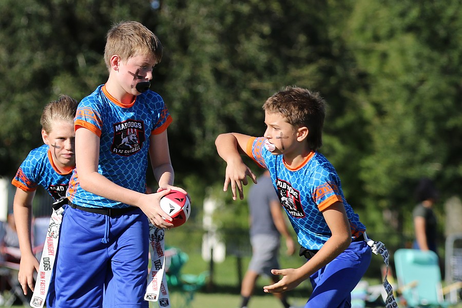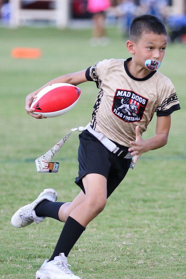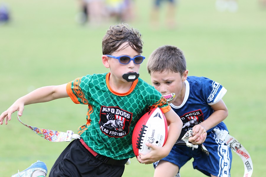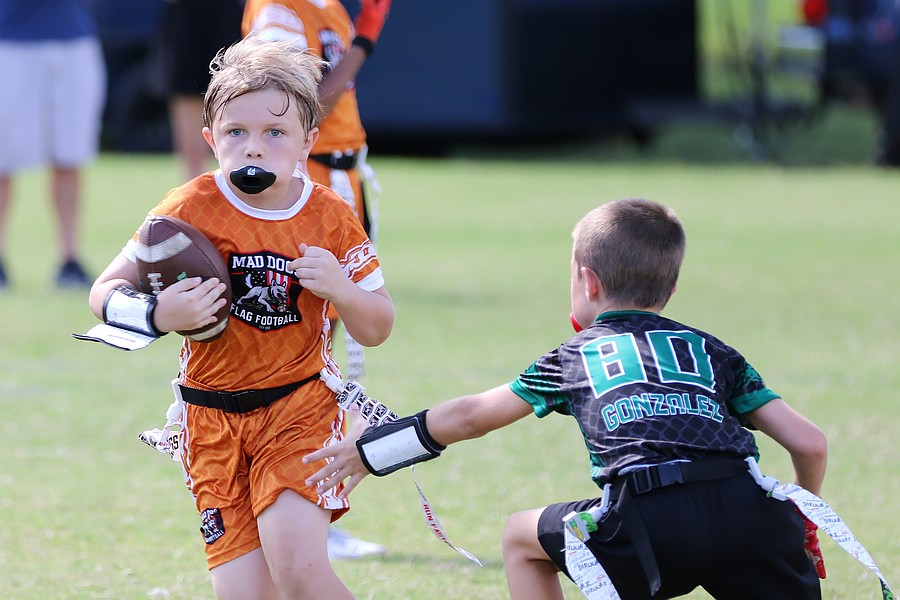 Mad Dogs Flag Football team banners waved in the fall-like breeze as players young as age 4 took to the fields at Ralph Carter Park on Saturday, Sept. 6, for the season opener.