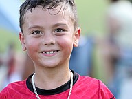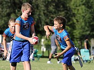 Tanner Lock plays for the 6U Georgia Bulldogs, who won against the Penn State Lions. His favorite part of the game is pulling flags and his team’s best play of the day was a Z Straight.