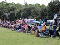 Friends and family cheer from the sidelines after visiting food trucks for snacks and drinks. Photo by Christine Rodenbaugh