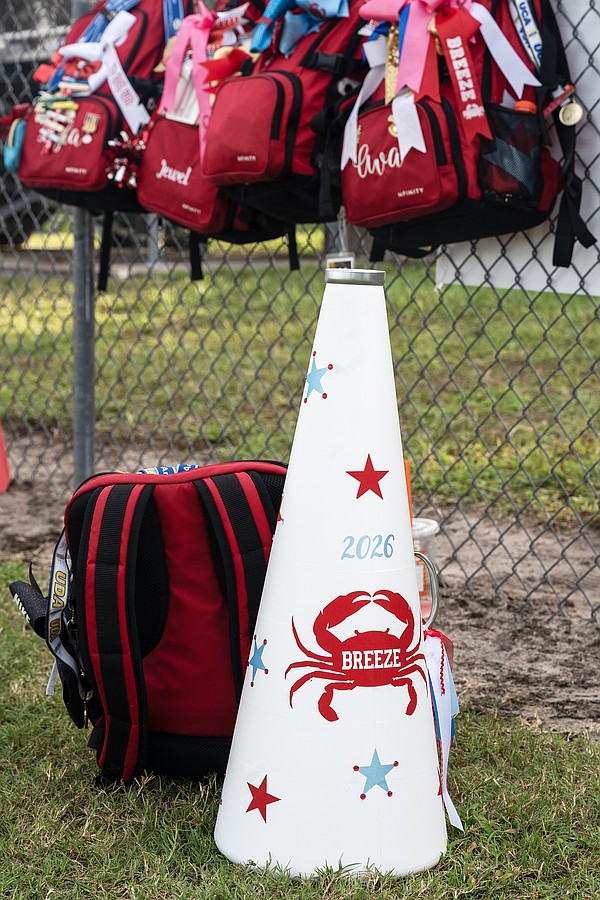 Football season has started for the Seabreeze Sandcrab cheerleaders. Photo by Michele Meyers