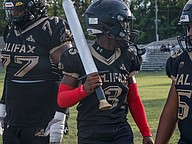 Halifax Academy team captains Jerome Hutchins (77) and Tre'Mari Denis (3). Photo by Michele Meyers