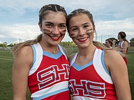 Seabreeze cheerleaders Betty Bunch (left) and Ava Ott (right). Photo by Michele Meyers