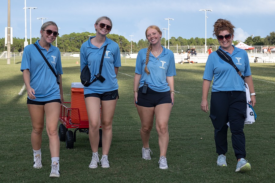 Seabreeze Allied Health director Kelley Lemon (right) and part of her crew get ready before the game against Halifax Academy on Friday, Sep. 5 at the Ormond Beach Sports Complex. Photo by Michele Meyers