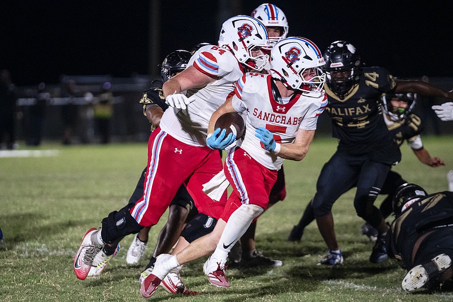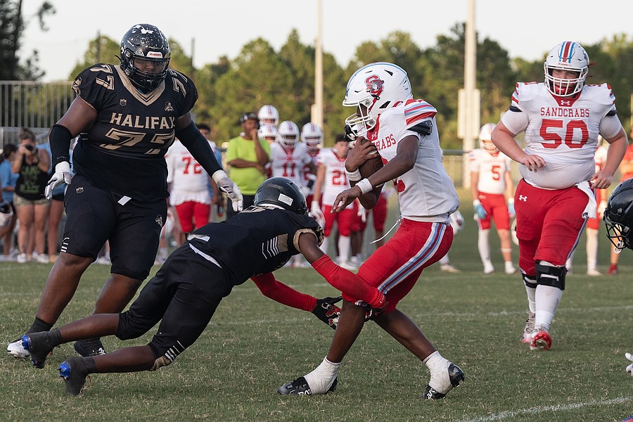 Klein said Halifax always plays tough despite having a small team with a large percentage of the players playing on both sides of the ball. As the game progressed, Klein said, the Knights (0-3) began to wear down, making it harder for them to tackle Seabreeze’s physical runners like running back Logan Smith, who led the Sandcrabs with 65 yards rushing on 11 carries.