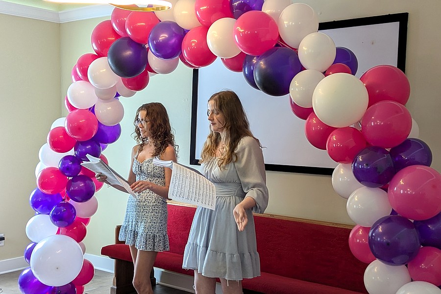 Angelina DeMaio and Ysa Boothman sing a medley of songs at the Flagler Playhouse's grand opening on Sept. 6. Photo by Brent Woronoff