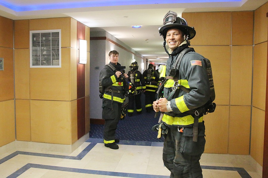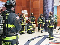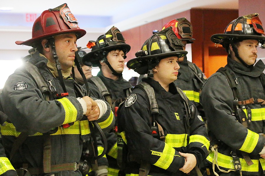 Sixteen firefighters took part in this year's 9/11 memorial stair climb. Photo by Jarleene Almenas