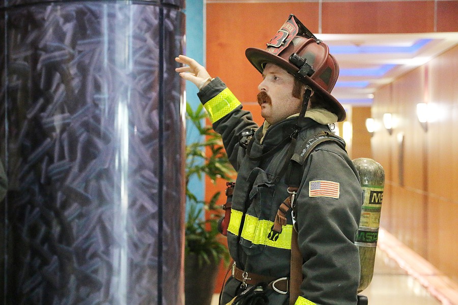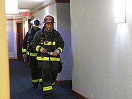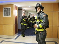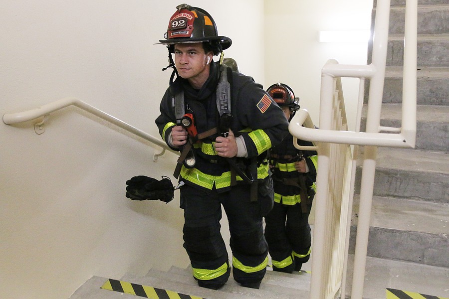 Capt. Nick Nates reaches the 25th floor and prepares to descend during the 9/11 memorial stair climb. Photo by Jarleene Almenas