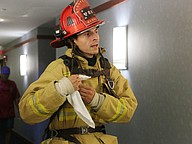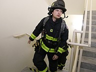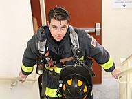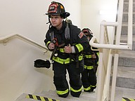 Ormond Beach probationary firefighter Ben Lloyd takes part in the 9/11 memorial stair climb. Photo by Jarleene Almenas