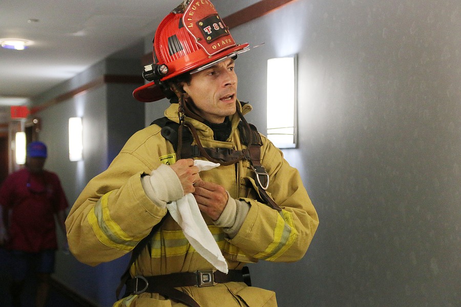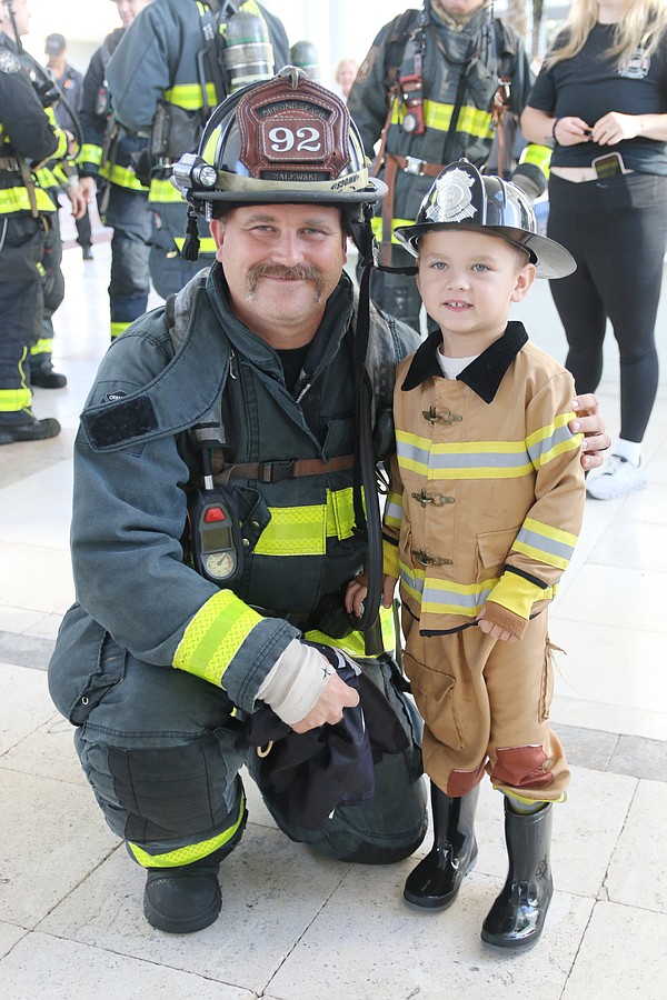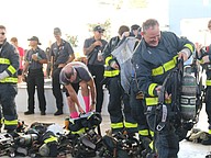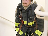 Ormond Beach Driver Engineer Robert Zalewski heads toward the stairs for the 9/11 memorial stair climb. Photo by Jarleene Almenas
