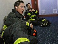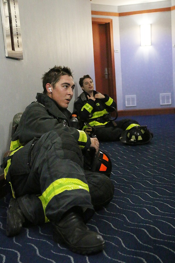 Ormond Beach probationary firefighter Clayton Carn takes a breather during the 9/11 memorial stair climb. Photo by Jarleene Almenas