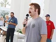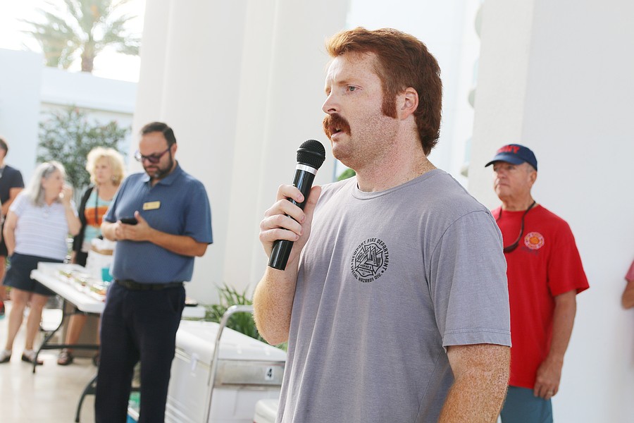 Ormond Beach Fire Capt. Hunter Ramirez speaks during the ceremony for the 9/11 memorial stair climb on Thursday, Sept. 11. Photo by Jarleene Almenas