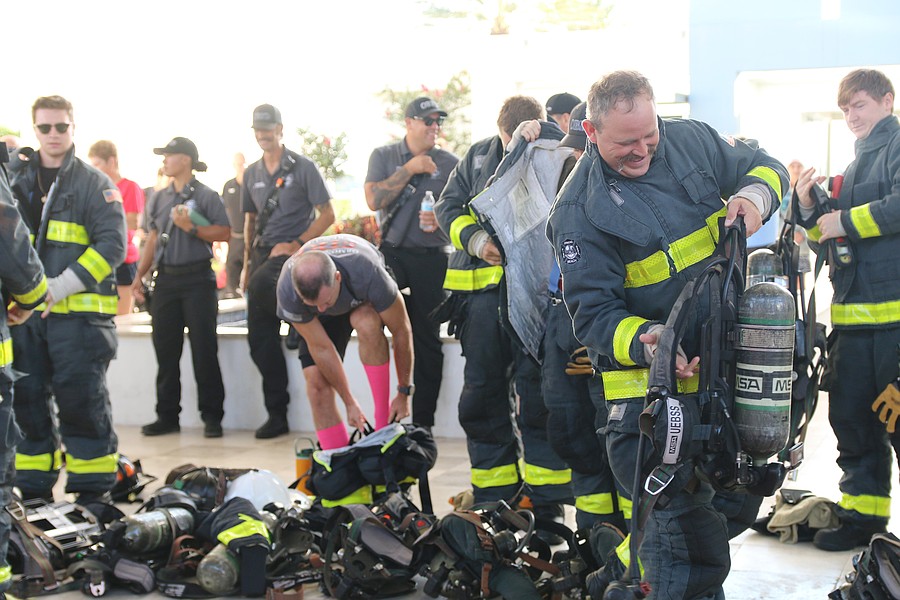 Thursday, Sept. 11, marked the 24th anniversary since the 9/11 terrorist attacks in New York City. To pay tribute to the 2,996 people who died that day in the World Trade Center — a figure that includes 343 New York City firefighters and 71 law enforcement officers — the Ormond Beach Fire Department held a memorial stair climb at the Marina Grande on the Halifax condominiums.