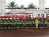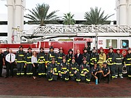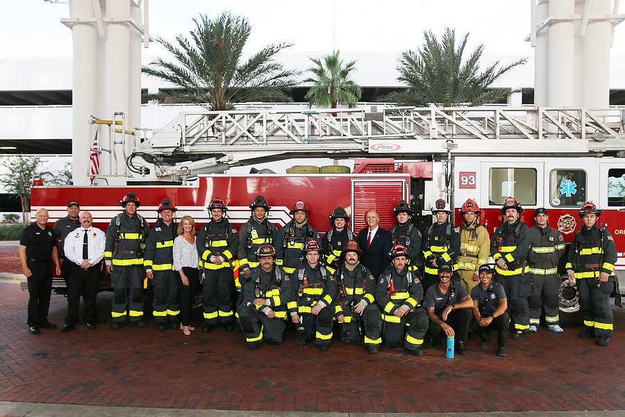 The Ormond Beach Fire Department and local officials: City Commissioner Lori Tolland (sixth from left) and Florida Rep. Bill Partington (center). Photo by Jarleene Almenas