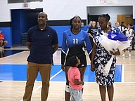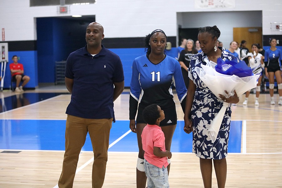 Nevaeh Walker with her family was honored on Matanzas Senior Night. Photo by Brent Woronoff