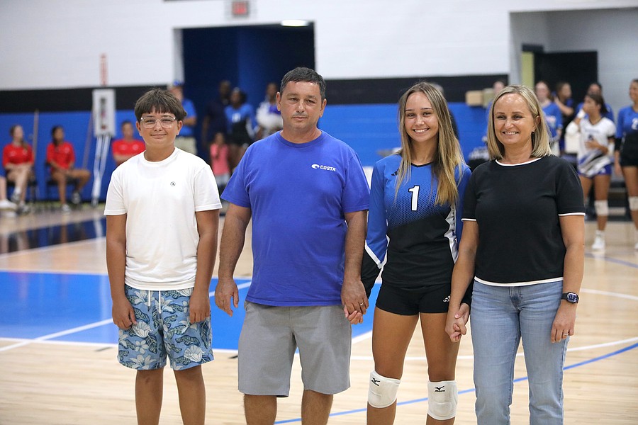 Olivia Chochev, with her family, was honored on Matanzas Senior Night. Photo by Brent Woronoff