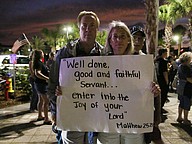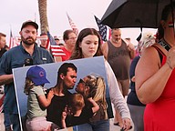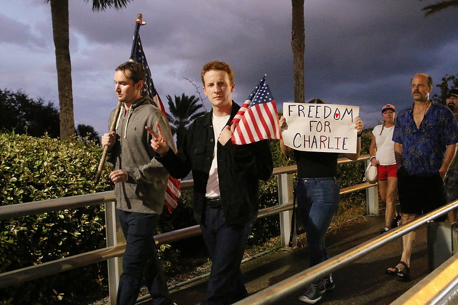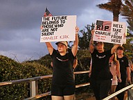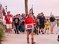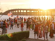 The event was organized by Markala Oman and Travis Limbocker and began at Rockefeller Gardens. Despite some rain, the crowd then marched across the Granada bridge to hold the vigil at Cassen Park.