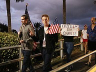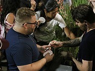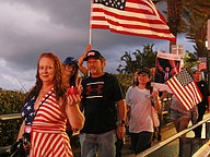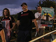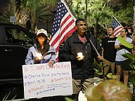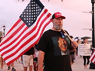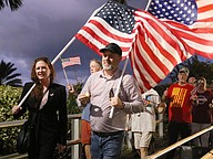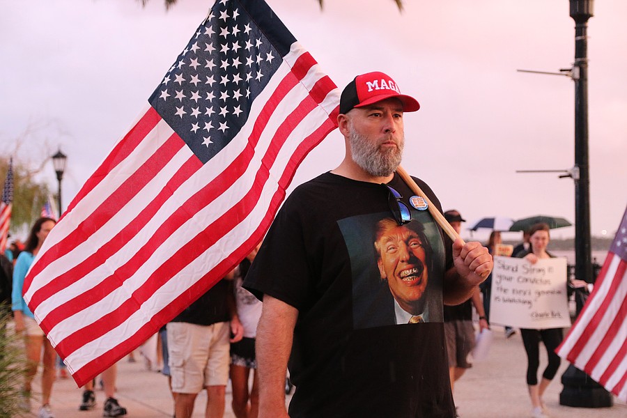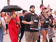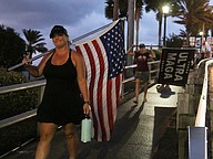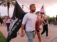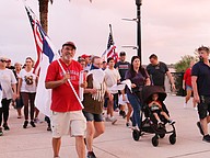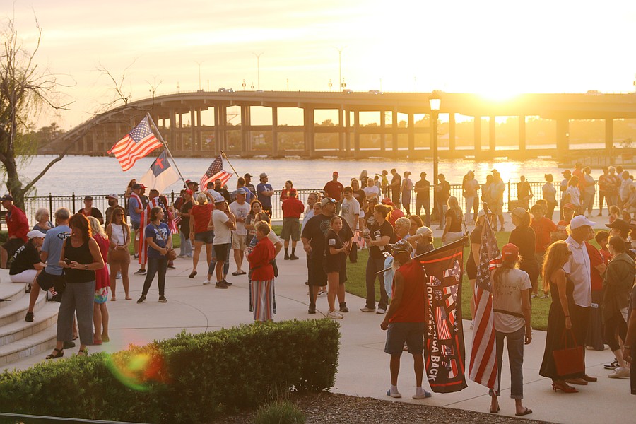 People gather at Rockefeller Gardens to prepare for a walk across the Granada Bridge in memory of Charlie Kirk on Friday, Sept. 12. Photo by Jarleene Almenas