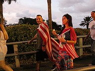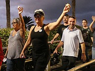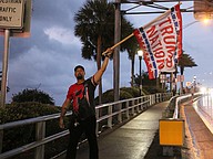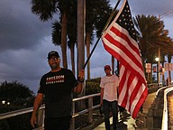Debbie Kruck-Forrester and Ormond Beach Mayor Jason Leslie walk across the Granada bridge in memory of Charlie Kirk on Friday, Sept. 12. Photo by Jarleene Almenas