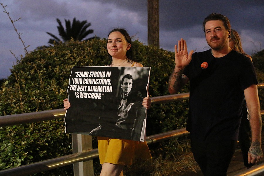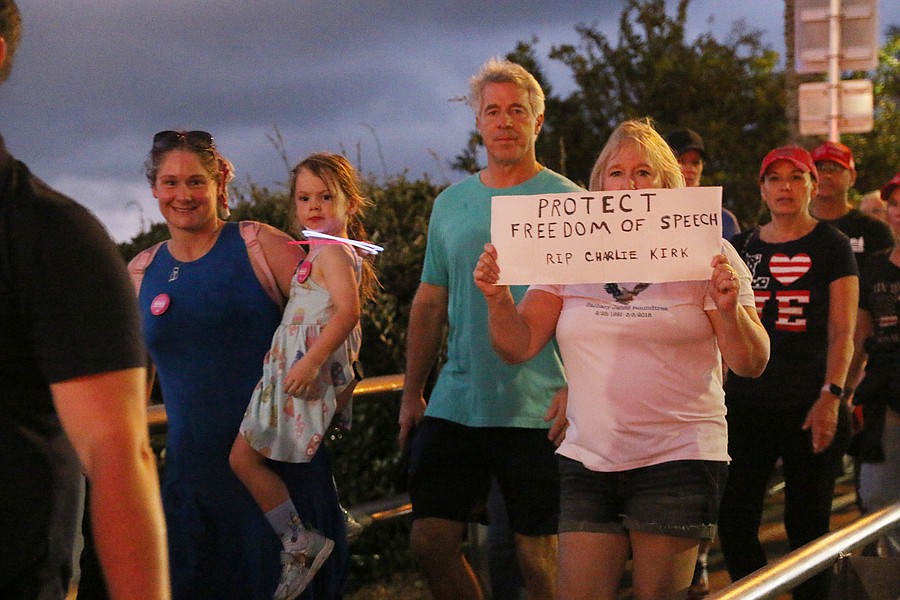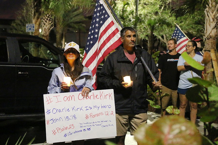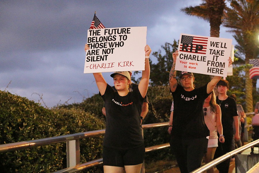 About 300 people attended a memorial walk and candlelight vigil in Ormond Beach on Friday, Sept. 12, for conservative activist Charlie Kirk, who was killed during an event on a Utah college campus on Wednesday.
