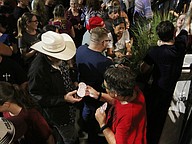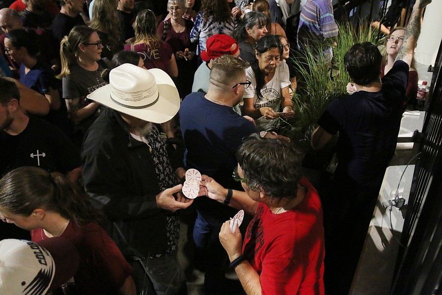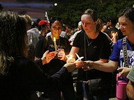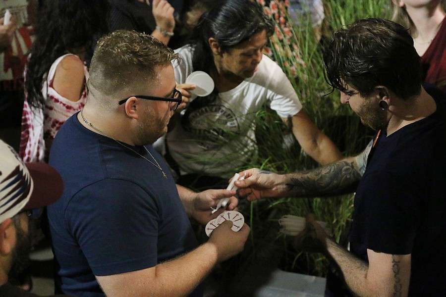 People hand out candles for the vigil in memory of Charlie Kirk at Cassen Park on Friday, Sept. 12. Photo by Jarleene Almenas