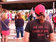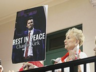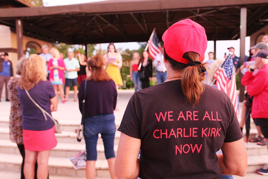 People attend a vigil in memory of Charlie Kirk at Cassen Park on Friday, Sept. 12. Photo by Jarleene Almenas