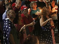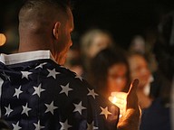 People light candles during the vigil in memory of Charlie Kirk at Cassen Park on Friday, Sept. 12. Photo by Jarleene Almenas