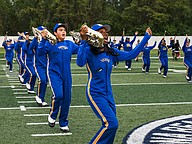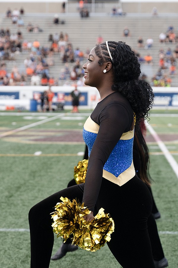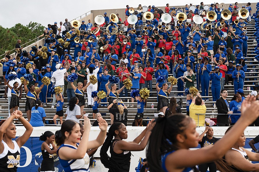 Mainland's Lady Bucs, drill team and majorettes join the band for a pre-game performance on Friday, Sept. 12 at the Daytona Stadium. Photo by Michele Meyers