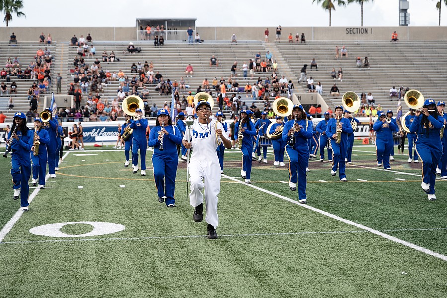 The Mainland band took the field for a pre-game performance on Friday, Sept. 12 at the Daytona Stadium. Photo by Michele Meyers