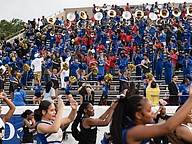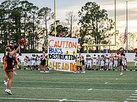 The Mainland band celebrates as the Buccaneers are introduced before the game against Spruce Creek on Friday, Sept. 12 at the Daytona Stadium. Photo by Michele Meyers