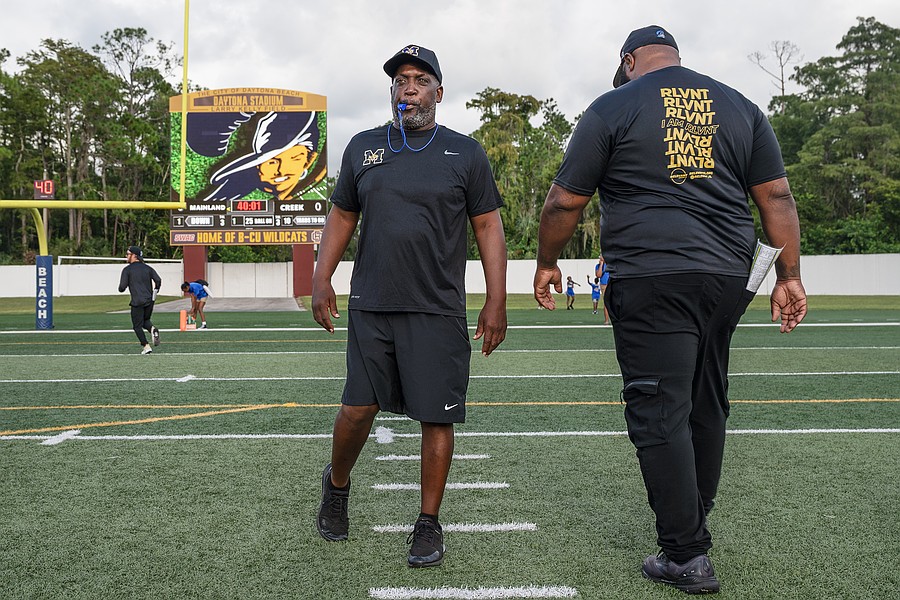 Mainland coach Jerrime Bell addressed his players following the loss at the Daytona Stadium.