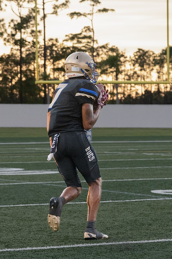 Junior running back Braylyn Simmons got the Bucs’ first drive rolling with a long run early in the first quarter. Johnson followed up with two passes to sophomore Kadin Flores — the second for a 2-yard touchdown.