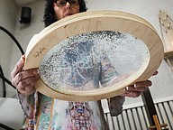 Nancy DeLuca uses wave drums during her sound bath sessions at 7th Heaven Sound Baths. Photo by Michele Meyers