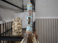 Detail of the handle of a Chakapa leaf shaker. Photo by Michele Meyers