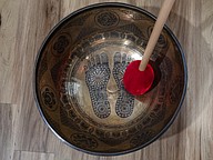 A chakra healing meditation bowl is large enough for particpants to stand in. Photo by Michele Meyers