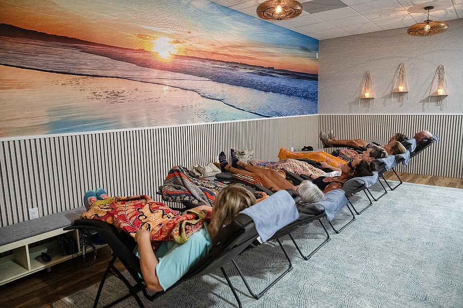 Sound bath seekers get comfortable in the zero-gravity chairs before the session begins at 7th Heaven Sound Baths at 725 W. Granada Blvd. Suite 11 in Ormond Beach. Photo by Michele Meyers