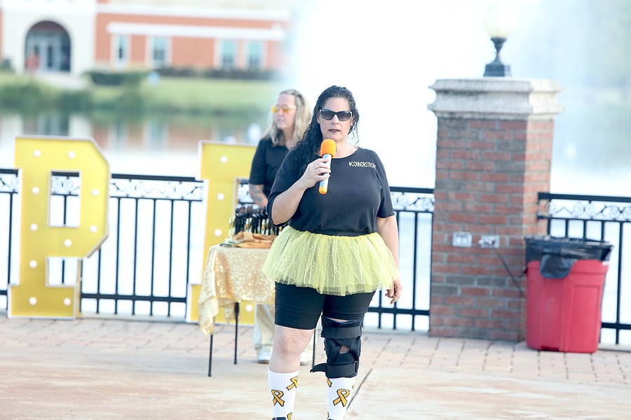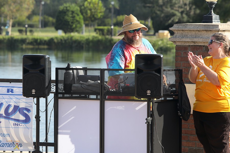 Judy Bucek led the opening ceremony at Live Like Cameron's seventh annual Flagler Warrior 5K. Photo by Brent Woronoff