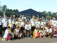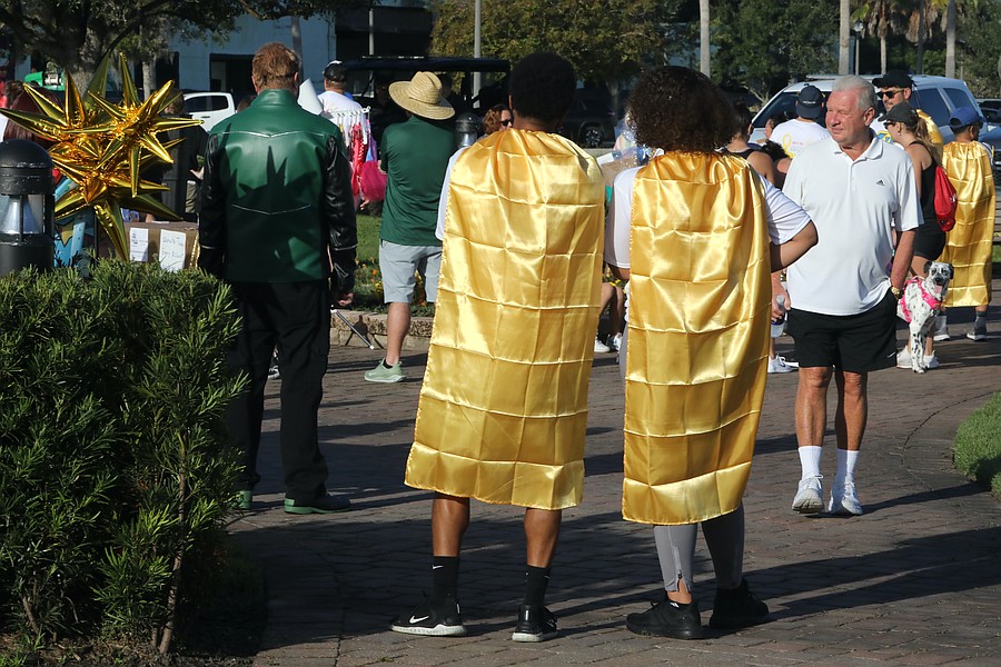 Participants wear gold capes representing childhood cancer awareness. Photo by Brent Woronoff
