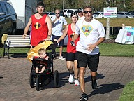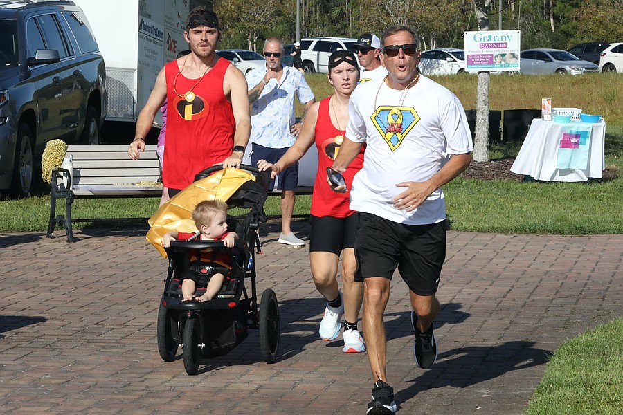 An "Incredibles" family runs with the little one getting a ride at Live Like Cameron's Flagler Warrior 5K on Sept. 21, at Central Park at Town Center. Photo by Brent Woronoff