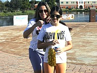 Giving out beads to each runner/walker as they complete a lap around the lake at Central Park at Town Center. Photo by Brent Woronoff