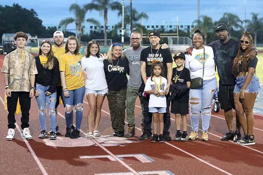 Recognizing Childhood Cancer Awareness Month, before the game, FPC honored local children who have battled cancer. The Live Like Cameron "warriors" with their families: Zoee Foster, Essie Bass Gonzalez, Ariel Nolan and Alaya McGriff. Photo by Brent Woronoff
