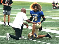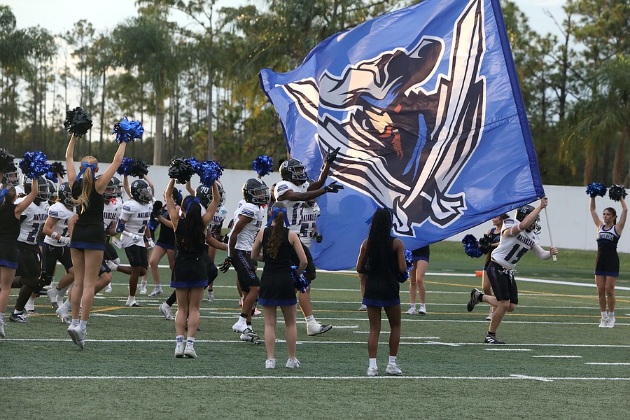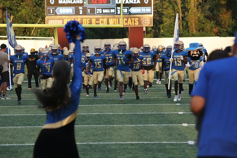 The Mainland Buccaneers run onto the field. Photo by Brent Woronoff